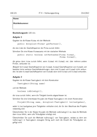 150.121 IT II VO Prüfung 25.4.2013 Name: Matrikelnummer: Bearbeitungszeit: 120 min. Aufgabe 1. Die Angestellten einer Firma sind durch die Klasse Angestellte dargestellt, die über den…