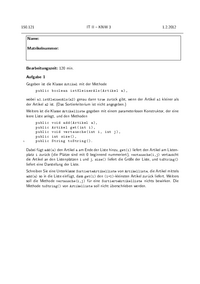 150.121 IT II – KNW 3 1.2.2012 Name: Matrikelnummer: Bearbeitungszeit: 120 min. Aufgabe 1 Gegeben ist die Klasse Artikel mit der Methode public boolean istKleinerAls ( Artikel a ) , wobei…