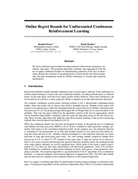 Regret Bounds for Restless Markov Bandits Ronald Ortner∗, Daniil Ryabko∗∗, Peter Auer∗, Rémi Munos∗∗ Abstract We consider the restless Markov bandit problem, in which the state of each arm evolves…
