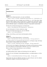 150.111 VO Prüfung IT I vom 29.1.2014 WS 13/14 Name: Matrikelnummer: Aufgabe 1. Gegeben sei eine Klasse Spielkarte , die über eine Methode 1 public static boolean sindEinPaar ( Spielkarte s1 ,…